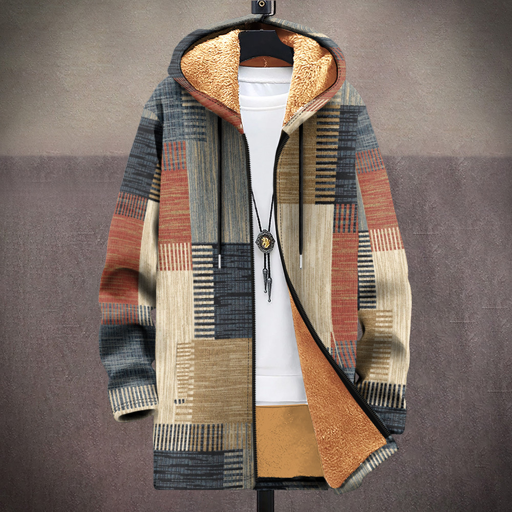 Men's Multicolor Pattern Zipper Hooded Cardigan